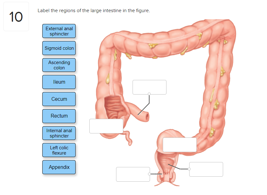 Solved Label The Regions Of The Large Intestine In The Chegg Com
